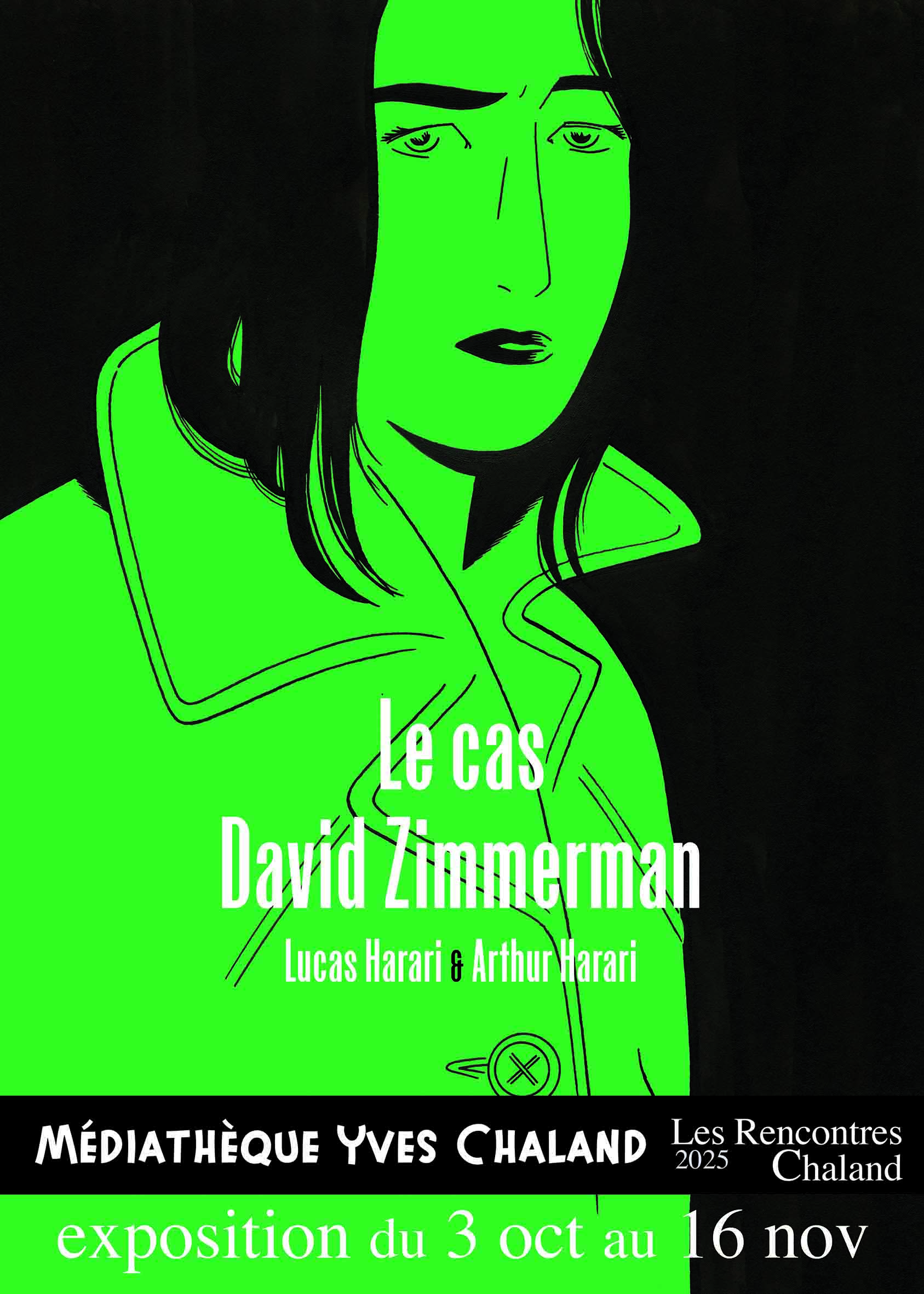 Affiche de l’exposition Le cas Davis Zimmerman de Lucas HARARI et Arthur HARARI présentée aux Rencontres Chaland 2025