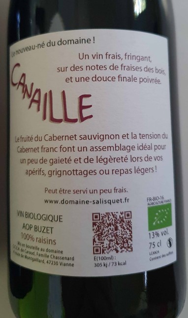 Un nouveau né du domaine Salisquet Cabernet Franc Cabernet sauvignon – Famille Chassenard SCEA de Caraud (contient des sulfites)